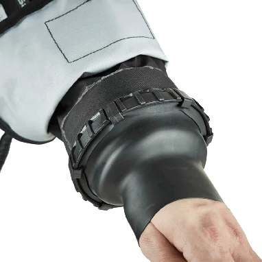 Si-Tech ring seal system for latex wrists and neck allows for the quick replacement of damaged latex seals or the use of optional silicone seals.
