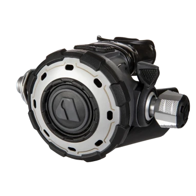 Features an innovative Diver Changeable Exhaust system (DCE). The system gives the diver the ability to change from a small exhaust tee to a large exhaust tee. The regulator is supplied with both sets of exhaust tees