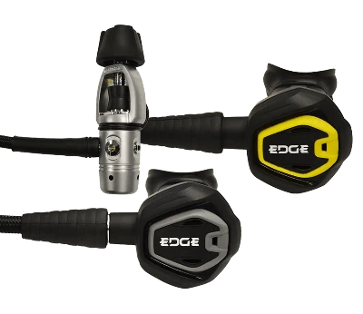 The Edge NANO connects these 1st and 2nd stages with a 28” Edge-Flex braided hose that is more flexible than other rubber hoses and thus reduces hose pull and mouth fatigue.