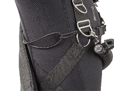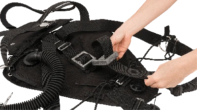 Adjustable Bungee System allows the diver to choose between ring, loop, or independent bungees. The laser cut adjustment plate allows for infinite adjustment to fine tune bungee length.